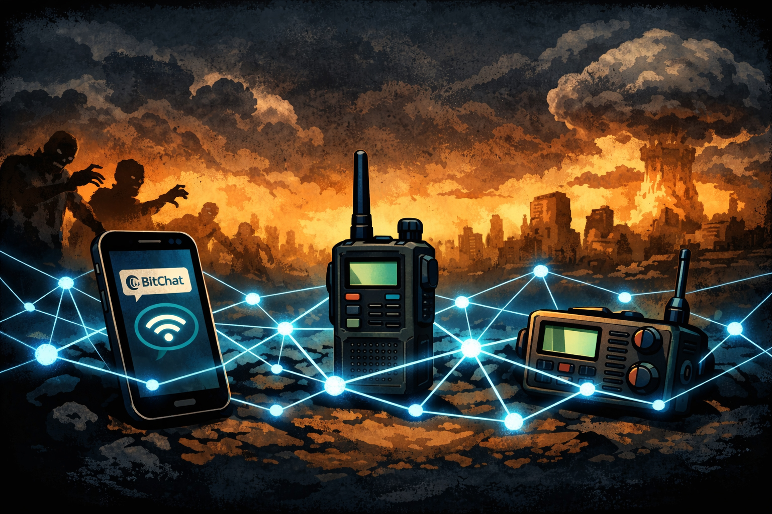 In a city, BitChat can form a mesh of phones that relay messages across surprisingly long distances—perfect for coordinating supply runs while avoiding zombies.